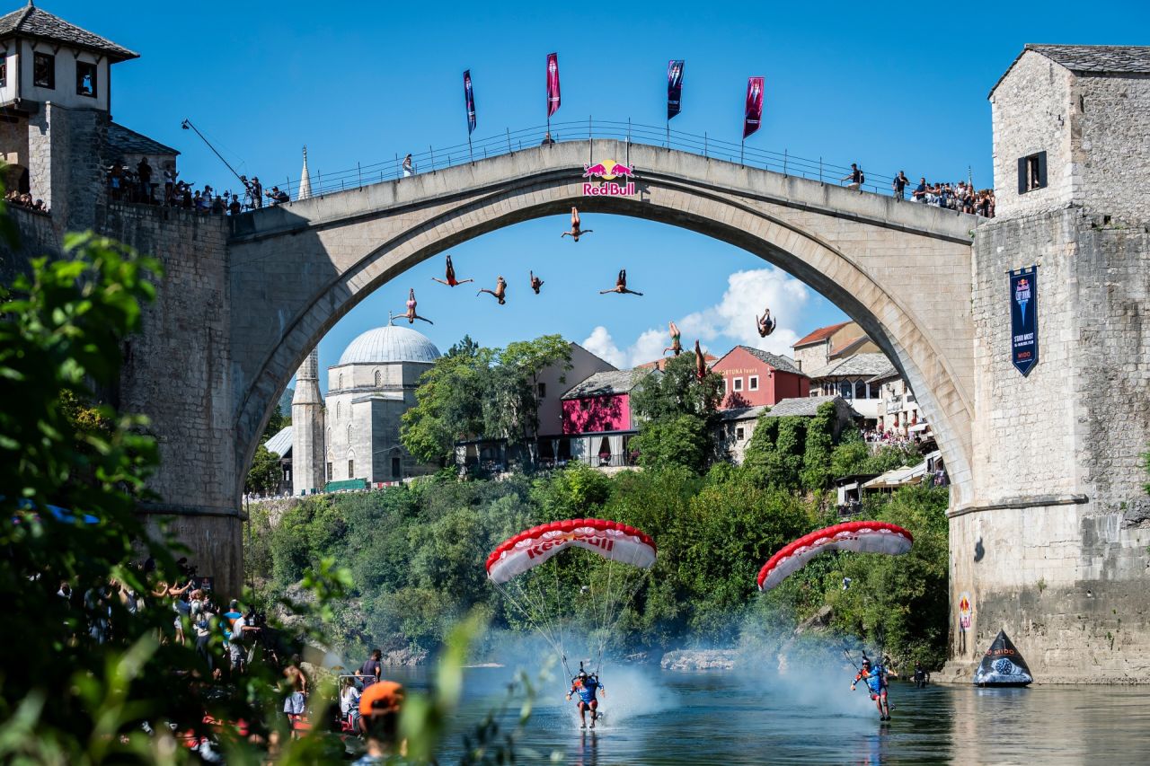 Spectacolul de la Mostar a fost deschis de Marco Waltenspiel și Marco Fürst, membri ai Red Bull Skydive Team, care au plonjat din avion deasupra podului și au aterizat în apă simultan cu 9 dintre sportivii înscriși în competiția desfășurată în acest weekend.