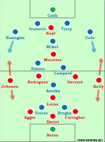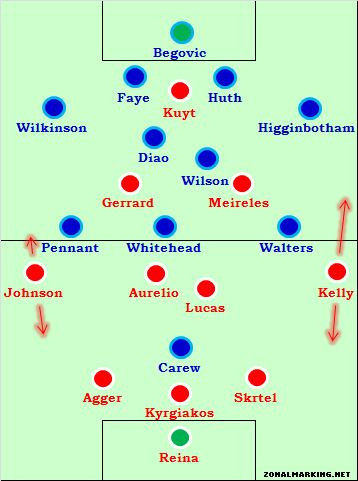 In ultimele doua meciuri, cu Stoke si cu Chelsea, Dalglish a jucat cu 3 fundasi centrali, o tactica nemaintalnita in ultimii 20 de ani in prima liga engleza. Stoke City, renumita pentru jocul bazat aproape exclusiv pe fizic, nu a reusit sa ameninte poarta lui Liverpool timp de 80 de minute, iar Chelsea, cu un trio ofensiv de 115 milioane € format din Drogba, Torres si Anelka, a realizat contraperformanta de a suta o singura data pe poarta.
