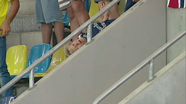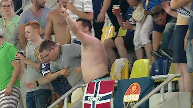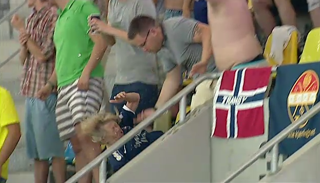 UPDATE Din fericire, femeia are doar leziuni superficiale. A primit ingrijiri medicale, apoi s-a intors in grupul suporterilor norvegieni.