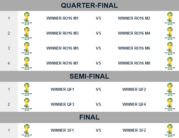 Dintre marile favorite dinaintea turneului final au trecut doar cinci, Brazilia, Argentina, Olanda, Germania si Franta reusind sa obtina biletele pentru optimi, in timp ce Spania, detinatoarea en-titre a trofeului, Anglia si Italia si-au facut bagajele.