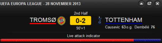 Scor final: Tromso 0-2 Tottenham! Londonezii s-au calificat de pe prima pozitie in 16-imile de finala ale Europa League.