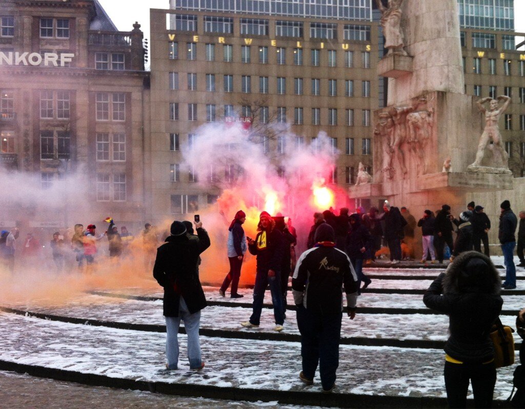 18.15 Fanii Stelei au fost luati la bataie de fortele de ordine dupa ce au aprins torte in centrul Amsterdamului!