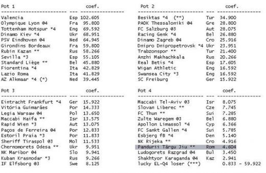 Tragerea la sorti de la ora 10 este una extrem de importanta! Daca Romania are noroc si una dintre Astra si Petrolul va fi extrasa din urne si va merge apoi in grupele Europa League, acest lucru ne va ajuta enorm in clasamentul coeficientilor alcatuit in functie de prestatiile din ultimii 5 ani.