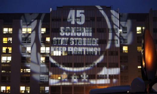 10:20 Fanii lui Schumacher i-au facut o proiectie uriasa pe una dintre cladirile din apropierea spitalului unde fostul campion mondial de Formula 1 se zbate intre viata si moarte.