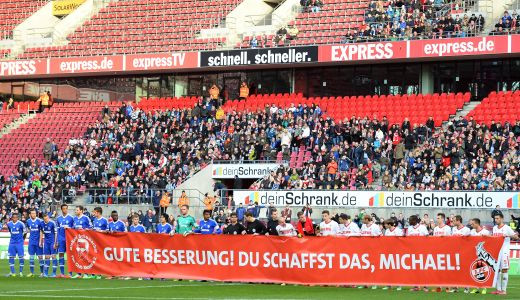 Schumacher primeste sustinere din fotbal, acolo unde are o multime de prieteni. Jucatorii de la Schalke si FC Koln i-a transmis un mesaj inaintea meciului amical desfasurat in cinstea celui mai titrat pilot din istoria Formulei 1.