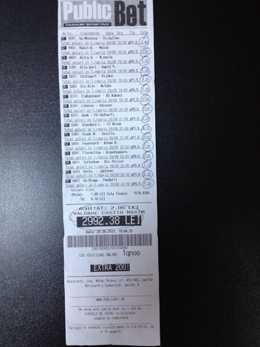 Un roman a dat marea lovitura la pariuri si a castigat aproape 30 de milioane cu numai doi lei pariati. A reusit sa ghiceasca niste si meciurile surpriza si si-a rotunjit veniturile.