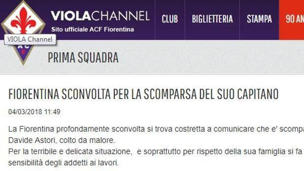 "Fiorentina anunta cu multa durere ca este fortata sa anunte ca Davide Astori, capitanul echipei, a murit in urma unei probleme neasteptate. Avand in vedere situatia teribila si delicata si din respect pentru familia lui, facem apel la sensibilitatea tuturor" a anuntat Fiorentina pe contul oficial de Twitter.