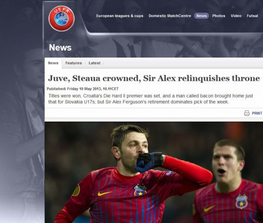 15:00 Pe pagina oficiala a UEFA, Steaua e printre vedetele saptamanii, alaturi de Sir Alex Ferguson si Juventus, noua campioana a Italiei. Golgeterul Rusescu le-a atras din nou atentia redactorilor site-ului federatiei europene.