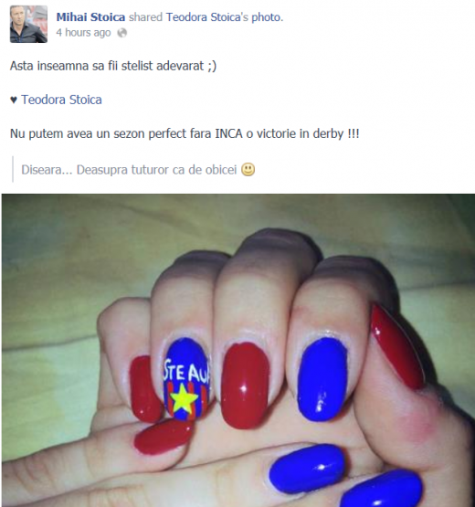 "Primul derby in care una din echipe e deja campioana?" a scris MM pe facebook, primind sute de like-uri de la fanii Stelei.