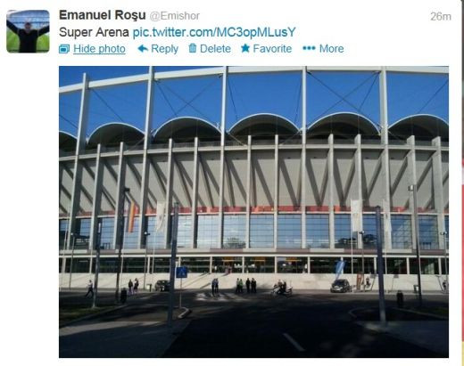 19:20 V-am pacalit fara sa vreau cu pozele. Va trebui sa credeti (aproape) tot ce vedeti scris aici. Modul 'date in retea' nu ma ajuta sa comunic, cred ca nu face fata asaltului. Sunt deja cateva mii de oameni pe National Arena. Adica doua, asa. :)