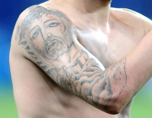 De altfel, bratul lui Dodel s-a umplut de desene din care nu se intelege mai nimic, pe langa desenul cu Isus mai avand un citat si un inger, pe antebrat, dar si motive japoneze ... sau nori... sau valuri.