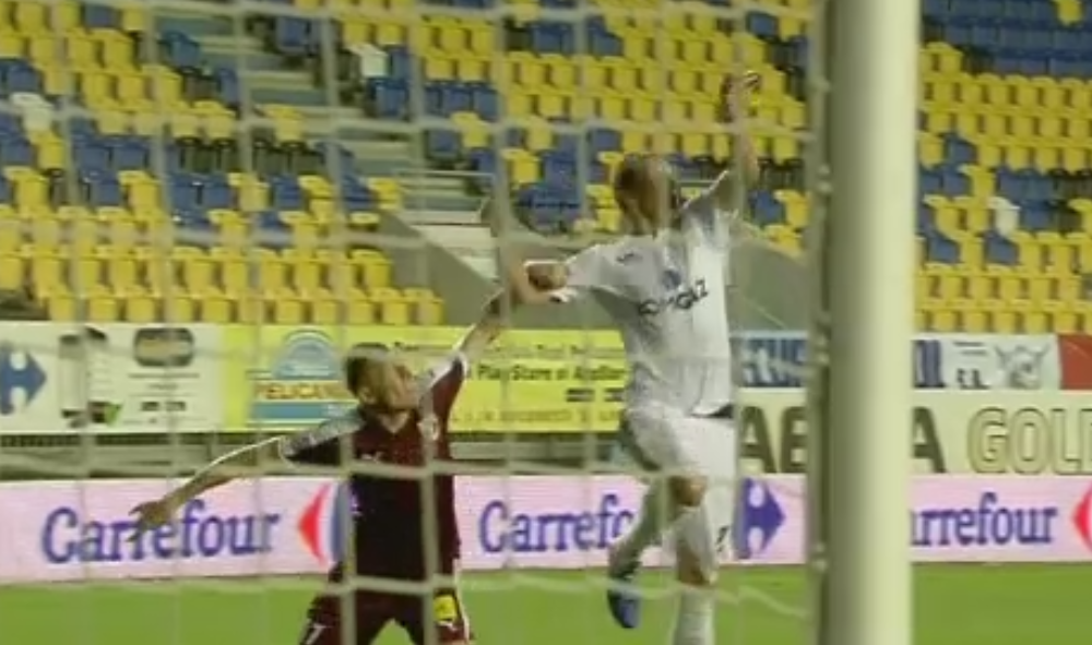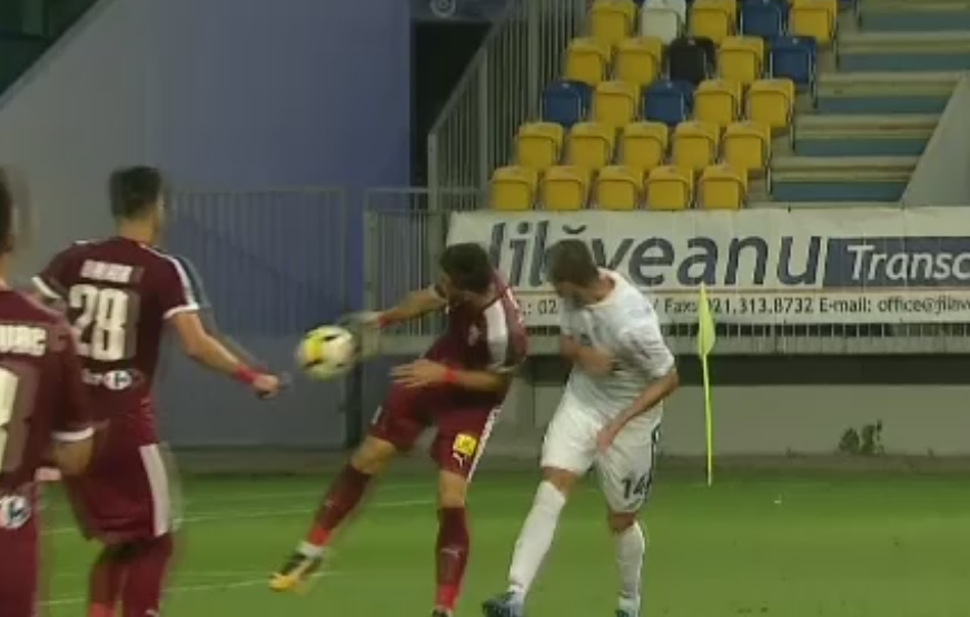 Prima faza a fost in minutul 74, cand mingea il loveste in mana pe Mihai Popescu, cel care blocheaza balonul din drumul spre poarta dupa o lovitura de cap. Hent clar si 11 metri, insa Tudor a lasat jocul sa continue.