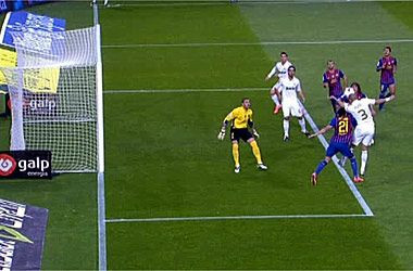 Min 14. Tello primeste mingea in offside, arbitrul intarzie sa fluiere, dribleaza doi fundasi de la Real in careu, trage de la 15 metri, Casillas respinge, Dani Alves suteaza de la peste 20 de metri si mingea intra in poarta, dar reusita e anulata.