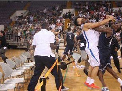 - Bataie la un meci de baschet intre o echipa din China si cei de la Georgetown