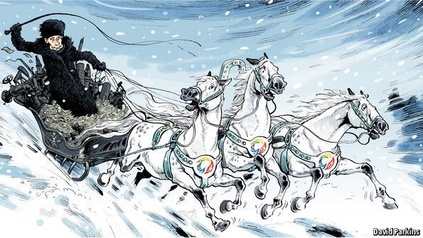 "Anul trecut, cand lumea incepea sa dea primele semne bune dupa recesiune, economia Rusiei scadea sub 1.5%. Problemele erau interne, au recunoscut si guvernantii rusi. Era succesului economic sub dominatia lui Putin s-a terminat. Astazi, Rusia are aceeasi problema ca URSS - nu poate creste economic marind piata muncii. Dar ca sa schimbe acest lucru, Ptin trebuie sa modifice regula de baza a Rusiei – ca statul si cei care se identifica cu statul sa nu mai fie principala sursa de putere si bani.” - Economist.