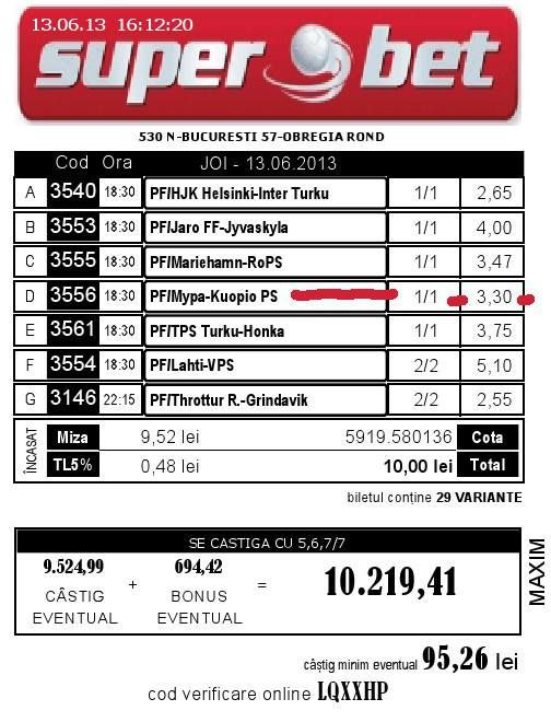 Un bucurestean a fost saptamana trecuta la un pas sa dea marea lovitura la pariuri sportive, fiind aproape sa incaseze peste 50.000 de RON, 500 de milioane de lei vechi.