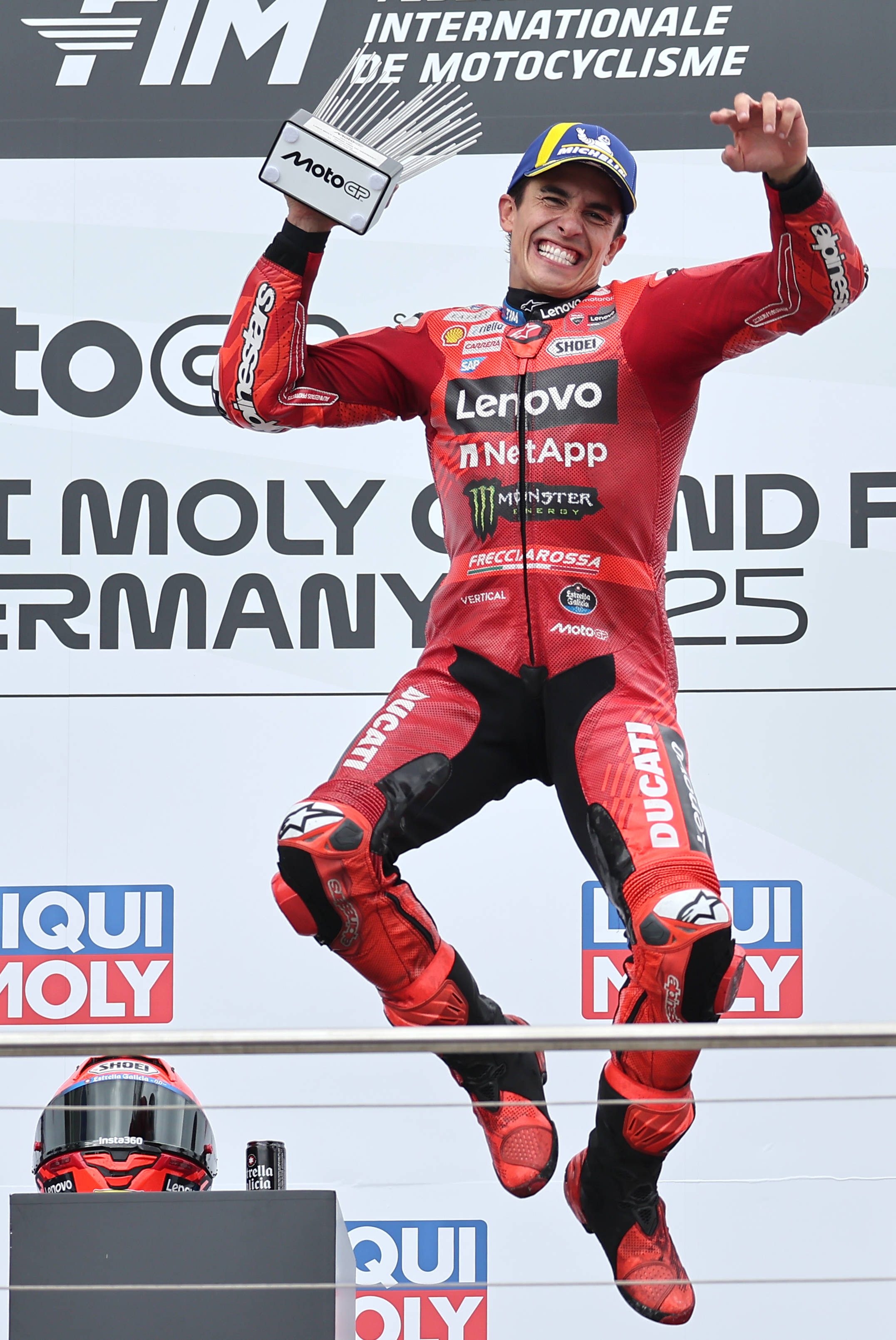 Marc Marquez (Ducati) nu a avut probleme în Marele Premiu al Germaniei, desfăşurat pe circuitul de la Sachsenring. Spaniolul a preluat conducerea încă din primul tur şi a câştigat cu mai mult de şase secunde înaintea lui Alex Marquez (Ducati Gresini). Pe locul al treilea s-a clasat italianul Francesco Bagnaia (Ducati), în timp ce pe locul 4 a venit Fabia Quartararo (Yamaha). A fost a 69-a victorie a lui Marc Marquez în MotoGP în 200 de curse disputate în competiţie.