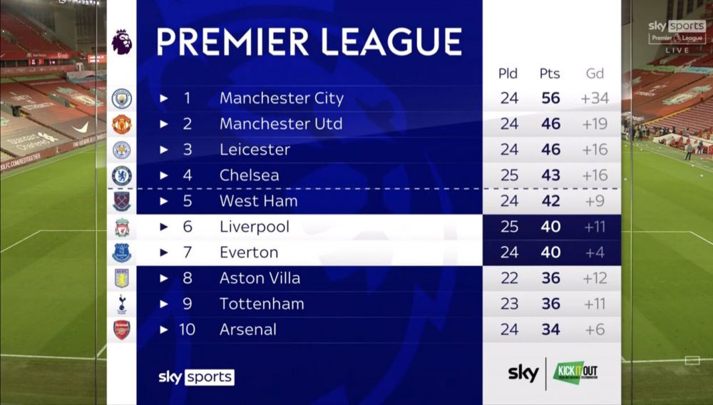 Cum arata acum clasamentul din Premier League in partea superioara: