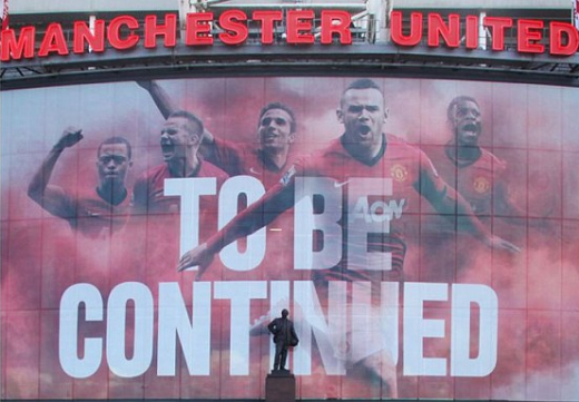 Pe fatada arenei Old Trafford a fost montat un banner pe care apare scris mesajul "TO BE CONTINUED", alaturi de cativa jucatori marcanti de la United. Jurnalistii de la Daily Mail se intreaba ce cauta Rooney pe afis, in conditiile in care transferul acestuia in vara pare iminent.
