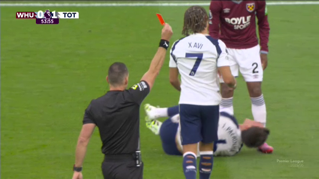 În minutul 54 al meciului, Tomas Soucek l-a faultat dur pe Joao Palhinha, căruia i-a și rupt jambiera. Jucătorii lui Spurs au cerut imediat eliminarea fotbalistului ceh.