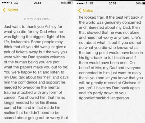 Chiar daca nu sta extraordinar din punct de vedere moral, Cole are puterea de a le transmite altora maximum de energie pozitiva. Un fan a postat pe net povestea unui caz emotionant care il face erou pe Cole! Englezul i-a facut o surpriza de senzatie unui suporter bolnav de leucemie, pe care l-a ajutat sa-si depaseasca suferinta.