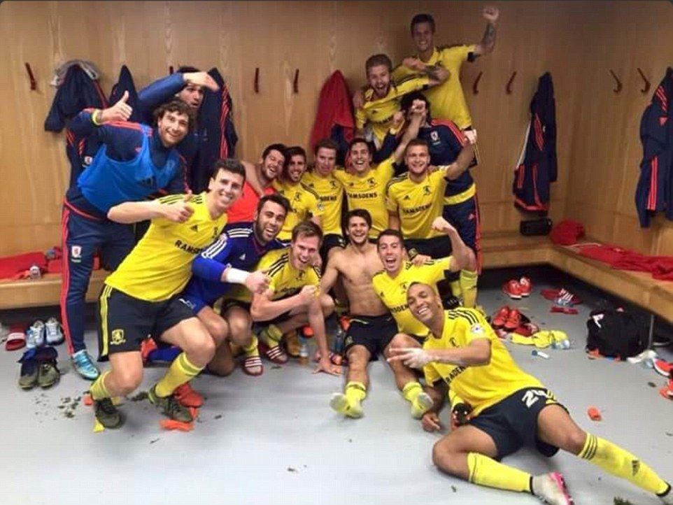 A fost sarbatoare dupa meci in vestiarul lui Middlesbrough. Jucatorii au oferit imaginea zilei in Anglia.
