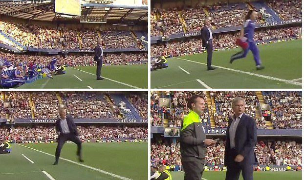SkySports a publicat astazi noi imagini cu momentul in care Mourinho a izbucnit la marginea terenului in clipa in care Eva intra pe gazon.