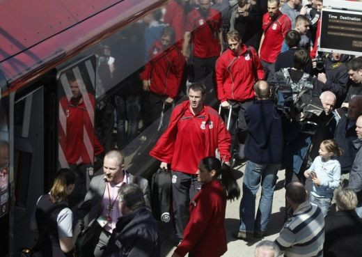 Steven Gerrard, Daniel Agger si Javier Massherano au fost condusi astazi de fani in gara Runcor de unde au luat trenul.
