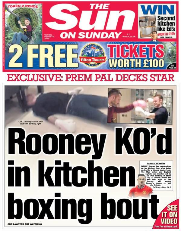 The Sun a publicat astazi un filmulet in care Wayne Rooney, mare fan al boxului, este facut KO dupa o bataie cu un prieten in locuinta sa din Cheshire
