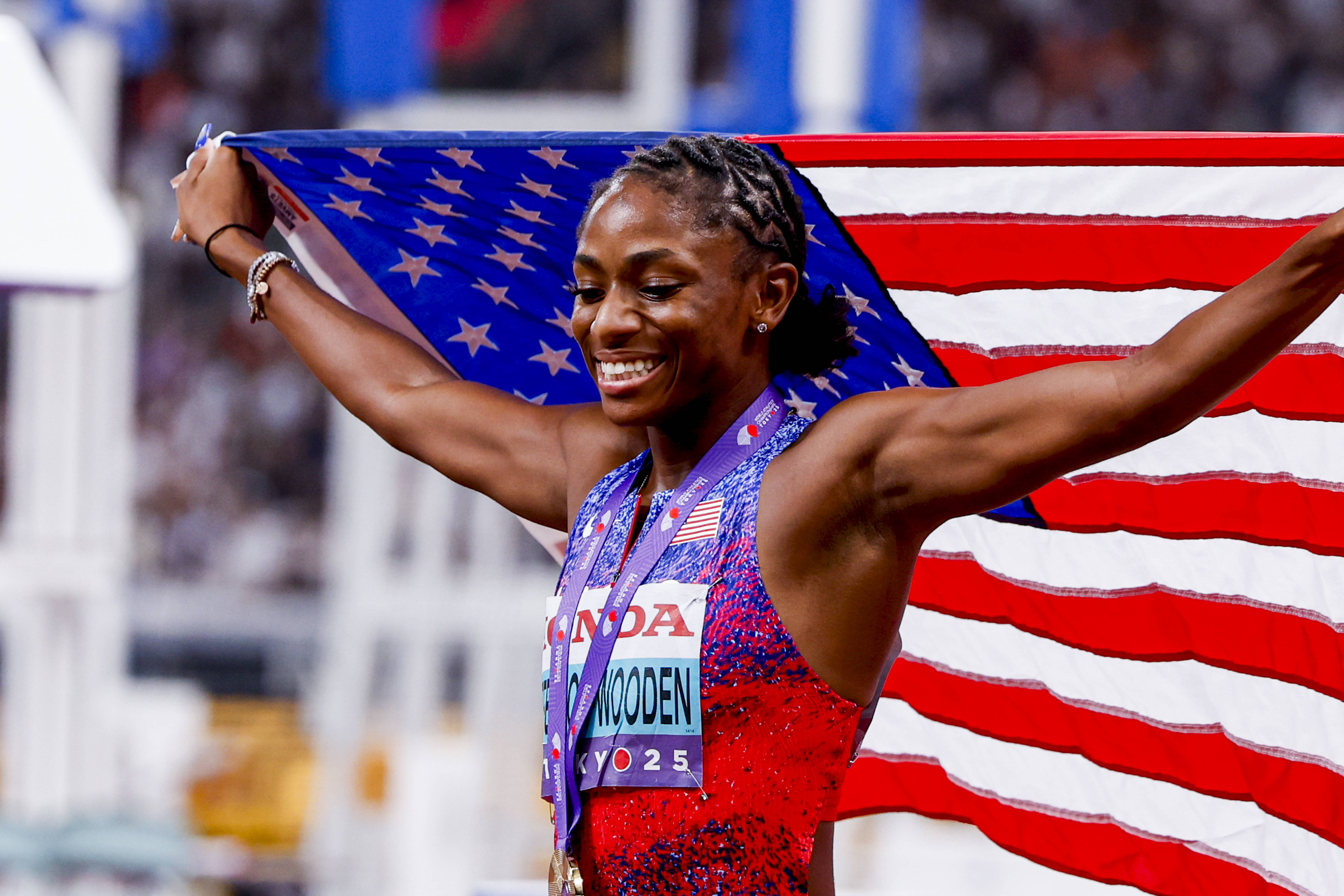 Americanca Melissa Jefferson-Wooden a câştigat duminică primul ei titlu mondial în proba de 100 m, la Tokyo, la Campionatele Mondiale de atletism, trecând linia de sosire în 10 sec 61/100 (vânt: +0,3 m/s), un record personal, scrie AFP.