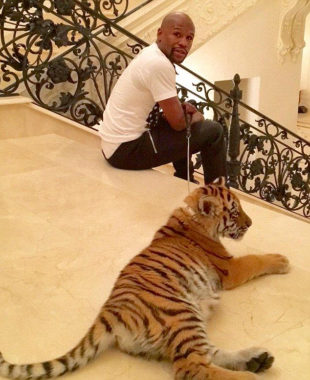 Mayweather tocmai si-a prezentat pe Instagram noua "fiara" din casa. Un pui de tigru pe care l-a luat ca animal de companie.