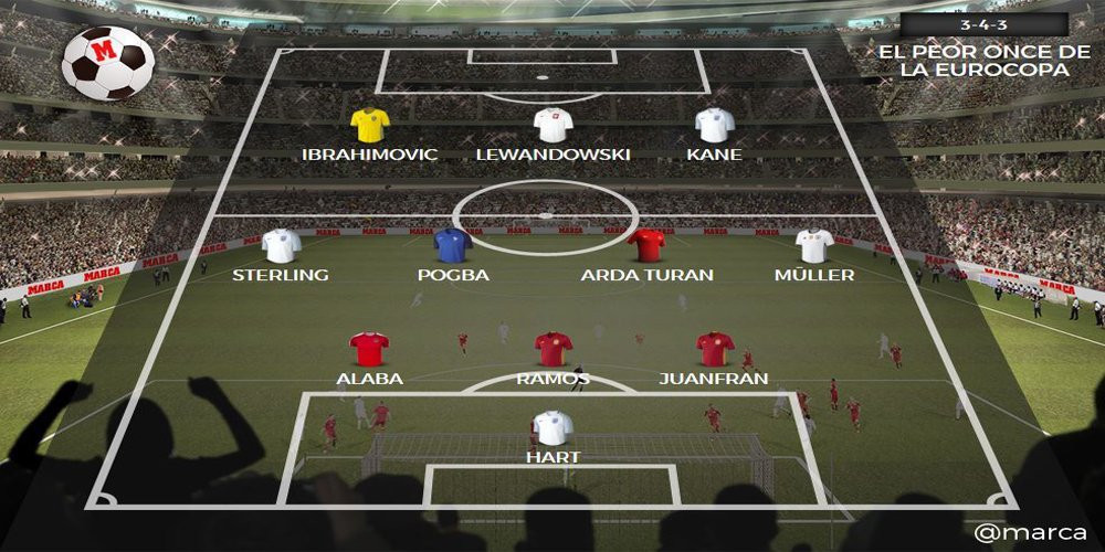 Vedeti mai jos cum arata cel mai slab 11 de la Euro, realizat de spaniolii de la Marca.
