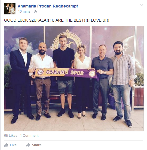 Impresarul Anamaria Prodan a anuntat pe Facebook trecerea lui Szukala in Superliga din Turcia.