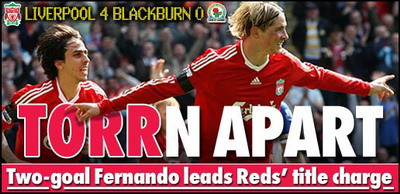 Liverpool, aproape de titlu dupa 20 de ani! Vezi dubla lui Torres din Liverpool 4-0 Blackburn