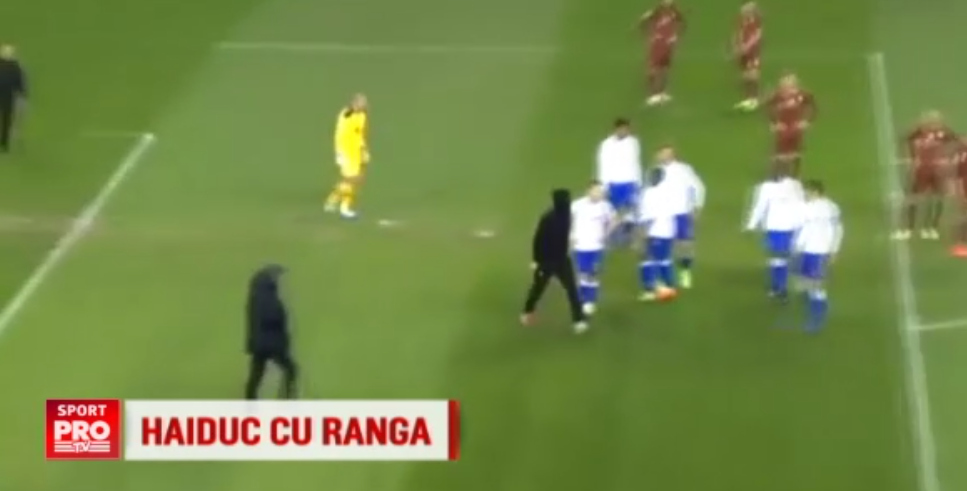 Incidente grave la meciul unui roman: un fan a intrat inarmat in teren si a vrut sa-l puna la punct pe arbitru