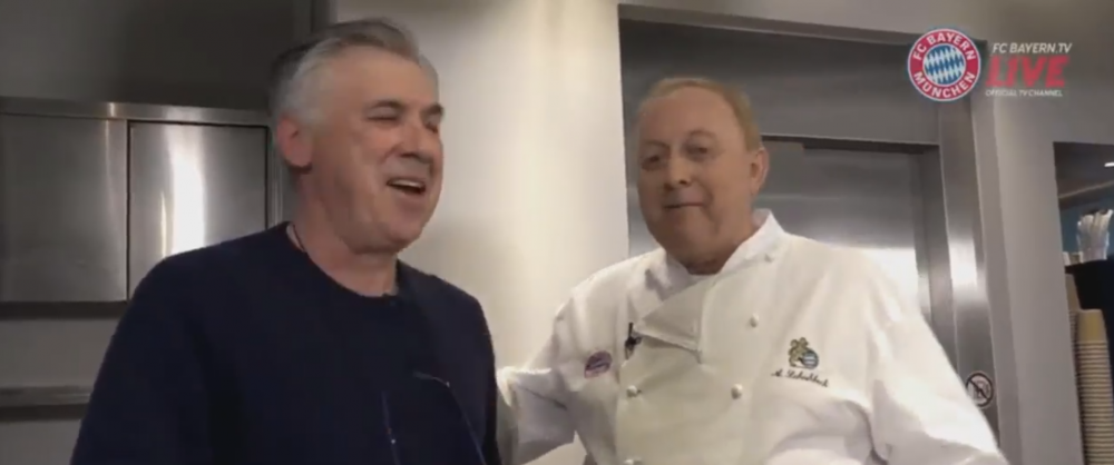'N-ai adus ceapa, asa ca o sa gatim fara!' :)) Ancelotti a facut paste carbonara in direct la Bayern TV