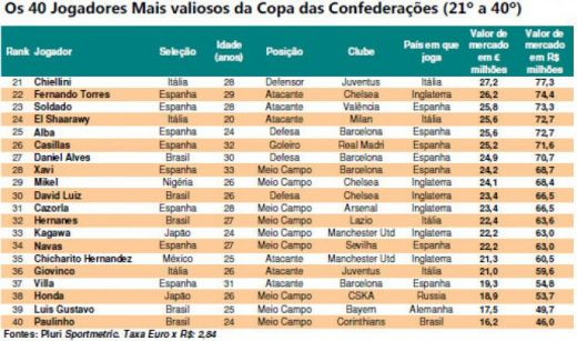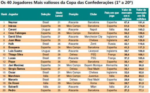 ► Cei de la Globo Esporte au facut un clasament al celor mai scumpi jucatori prezenti la Cupa Confederatiilor. Pe primul loc se afla noul jucator al Barcelonei, Neymar!