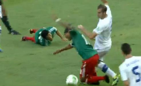 Min 14. Doua faulturi la aceeasi faza, Dos Santos si Zavala au ramas intinsi pe jos, pentru cateva secunde!