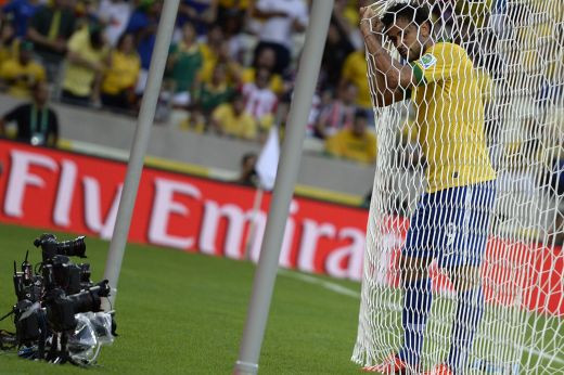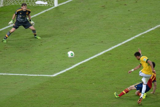 Min 2. GOOOOL BRAZILIA! Centrare in careul Spaniei, mingea il loveste pe Arbeloa in spate si sare la Fred care o impinge in poarta desi se afla la pamant! VIDEO AICI