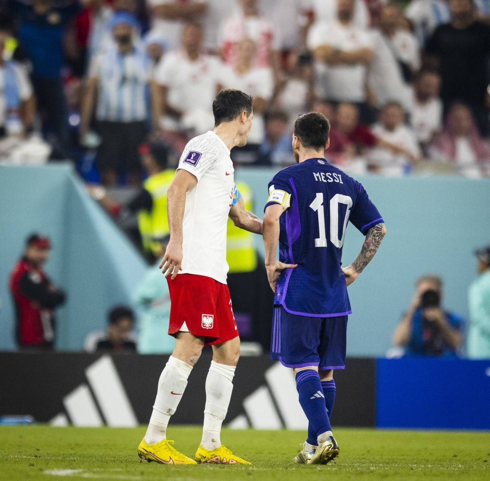 Imediat după fluierul final al meciului Argentina - Polonia, Messi s-a întâlnit din nou, la mijlocul terenului, cu oponentul său. Argentinianul s-a dus direct spre Lewandowski, iar cei doi fotbaliști s-au îmbrățișat. Jucătorul lui PSG i-a șoptit și ceva la ureche vârfului polonez. Cei doi au avut apoi o scurtă conversație, cu gurile acoperite.