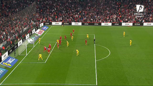 Minutul 23: Ocazie România, cea mai mare de până acum! Ianis Hagi șutează periculos din interiorul careului, dar Yuksek respinge cu capul în corner.