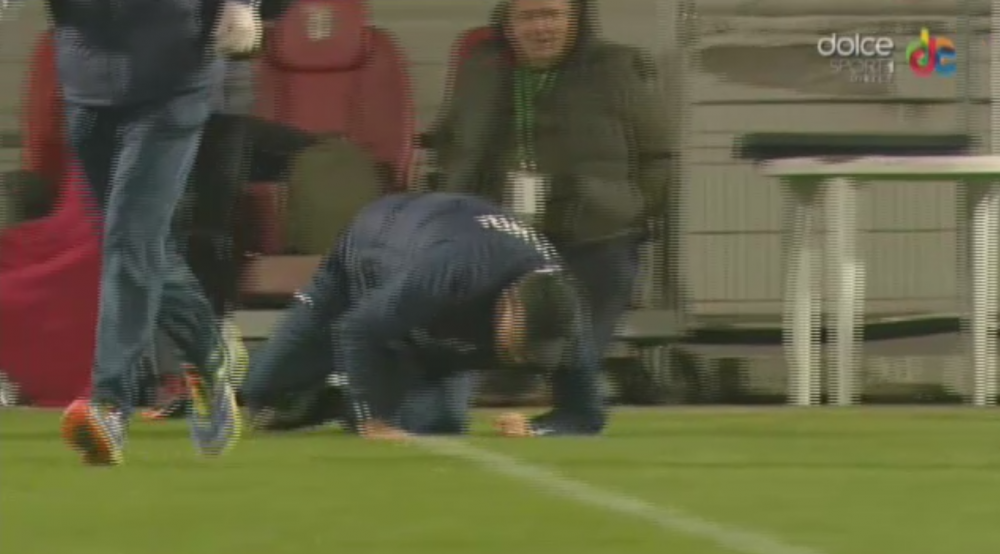 Nervii lui Marius Sumudica au cedat din nou in timpul unui meci. Antrenorul a fost protagonistul unei faze rar intalnite pe un teren de fotbal in minutul 80 al partidei cu Dinamo, din sferturile Cupei Ligii.