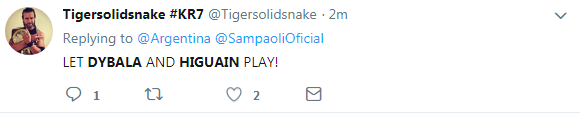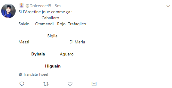 Par contre le sélectionneur argentin ultra perché Dybala et Higuain sur le banc mais pour faire rentrer des chiens de Primera División là c’est oui. pic.twitter.com/K2oLGuPB3m