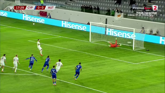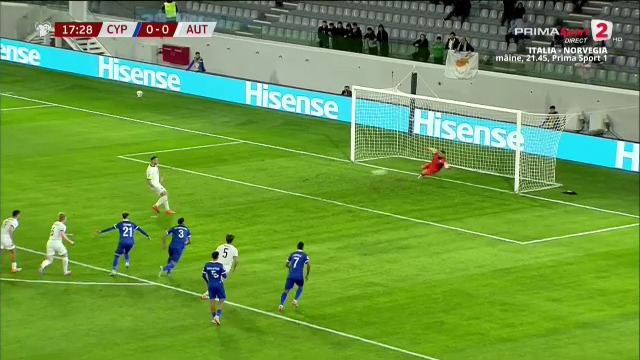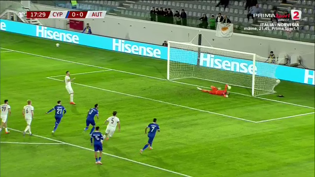Ciprioții, fără miză reală în aceste preliminarii, nu au reușit să riposteze, iar Austria a controlat autoritar jocul în primul sfert de oră.