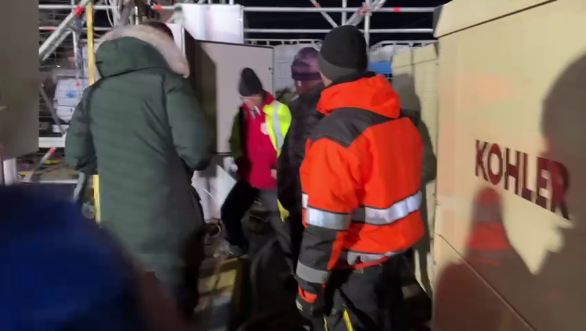 Primele imagini surprinse de reporterii aflați la fața locului arată o porțiune de teren scufundată în semiîntuneric, în timp ce organizatorii se străduiesc să remedieze problema.
