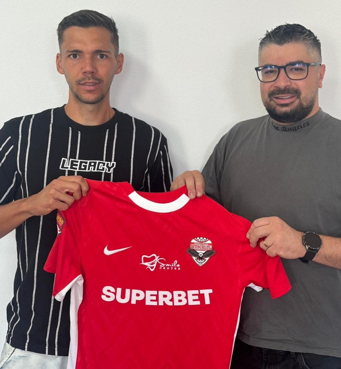 Fotbalistul cu cetățenie greacă și australiană a semnat cu clubul nostru o înțelegere valabilă până la jumătatea acestei ediții de campionat, cu drept de prelungire în eventualitatea în care va confirma așteptările.