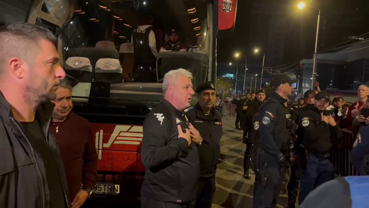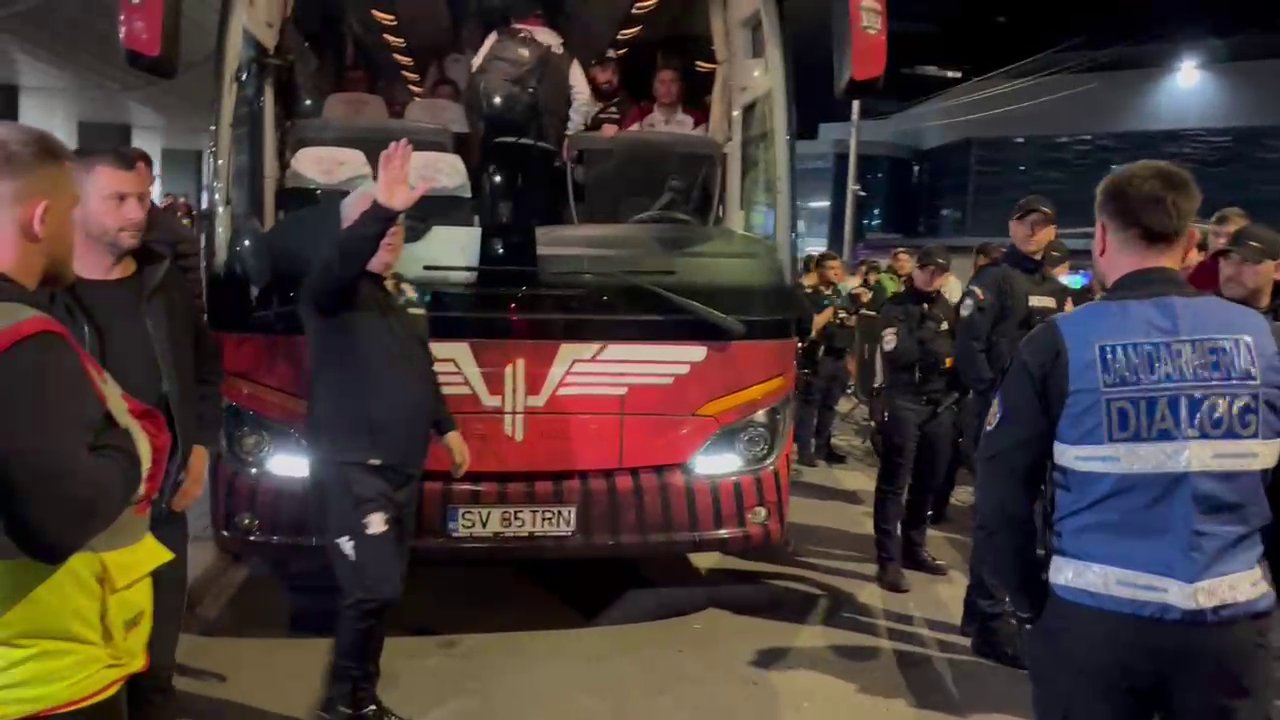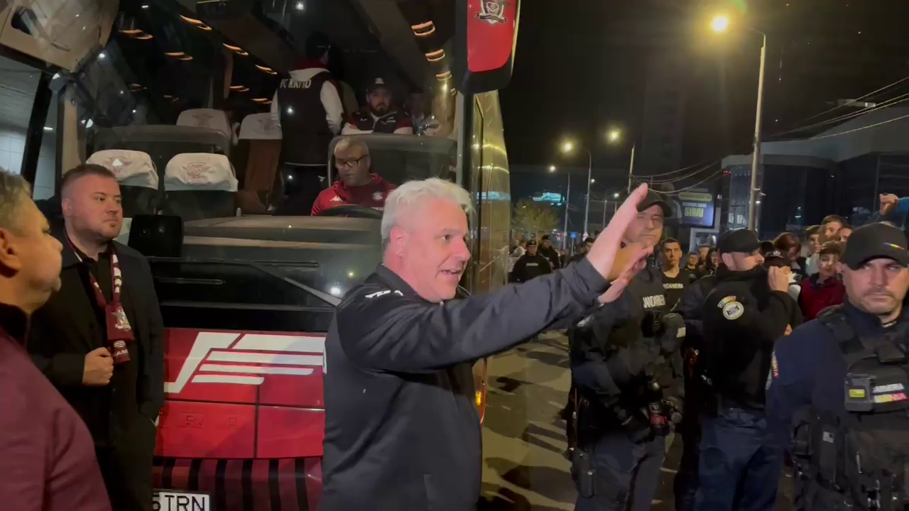 Înainte să urce în autocar, Marius Șumudică a strâns mâna câtorva suporteri și a plecat de lângă aceștia în aplauze.