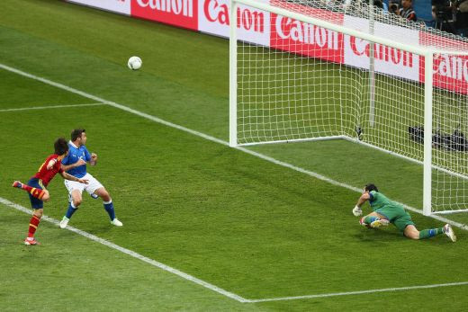 Italia nu a avut replica la Kiev pentru furia rosie a lui Del Bosque, care a reusit sa deschida scorul in minutul 14 prin Silva. Acesta a trimis cu capul in poarta centrarea perfecta venita din partea lui Fabregas. Spania a facut 2-0 inainte de pauza prin noul extraterestru Jordi Alba, care a trimis superb pe langa Buffon o pasa geniala marca inregistrata Xavi. Nici repriza a doua n-a adus nimic nou in echipa Italiei, care a revenit de la vestiare cu Di Natale pe teren.