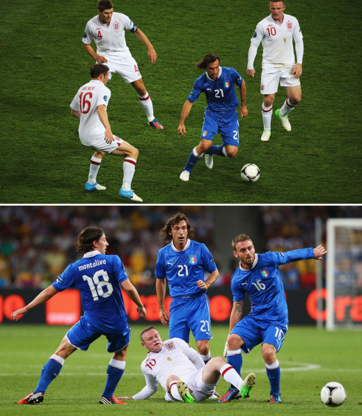 Final! Meciul merge in prelungiri dupa ce Italia a ratat 9 ocazii imense de gol, iar Anglia 2. Meciul poate fi descris cu o singura poza. De fapt, doua... :)