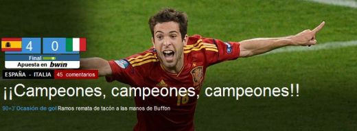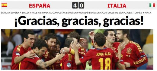 23.49 E sarbatoare in Spania. Cele mai tari publicatii din tara triplei campioane se intrec in titluri prin care sa arate bucuria pe care o simt cei peste 47 de milioane de spanioli.